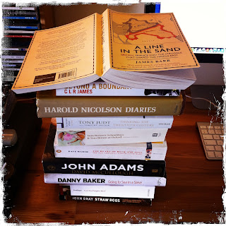 But one has also to ask, as with the books on display on the shelves in the background of portrait photos taken in somebody's home, about the pile of books (carefully?) chosen to illustrate a post such as this...